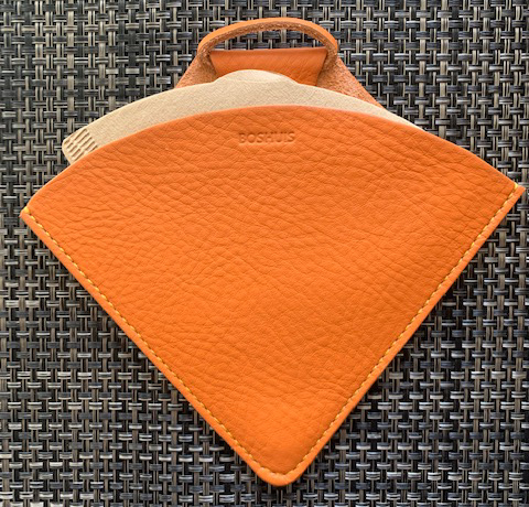 牛革製のコーヒーペーパーフィルターケース。しなやかなオイルレザーを使った手縫いのケースです。マグネット、壁掛けの2ウェイ式。カラーは「オレンジ」、「イエロー」、「グリーンサファイヤ」の3種類からお選びください。